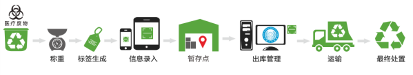 医疗废物在线监管系统由在线监管云平台、现场医废收集移动客户端、现场医废收集监管设备。